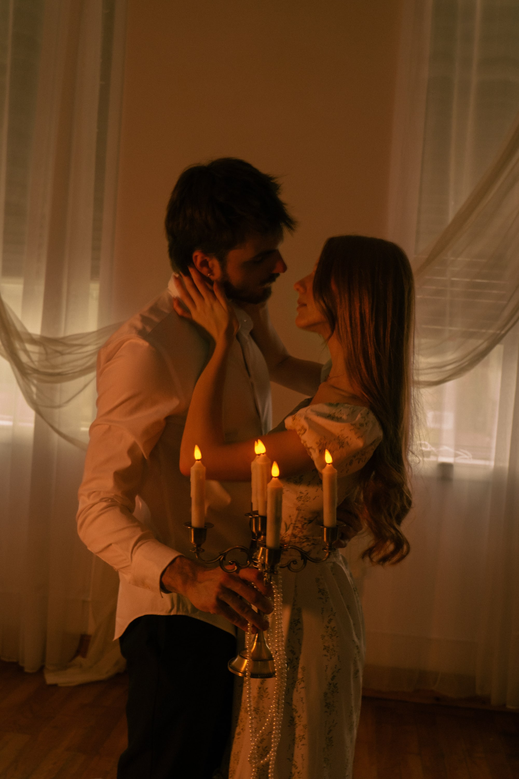 Warm candlelight, an antique piano, and the quiet tension between a pianist and his muse. Every frame carries the weight of something unspoken — the kind of session where the camera simply captures what was already there.
